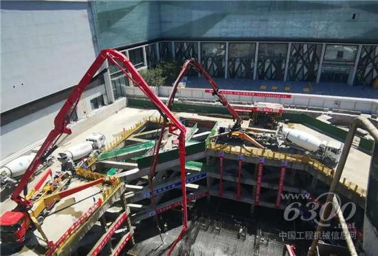 由三一泵送设备参建的宁波“超级地标”——宁波中心大厦,历经55个小时高强度连续施工,于上月完成了2.2万方混凝土基础底板浇筑。创造了宁波地区民用建筑中临近地铁最深基坑、超厚基础底板的一次性连续浇筑纪录。