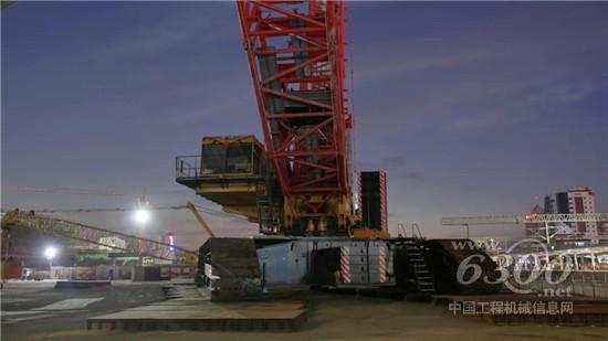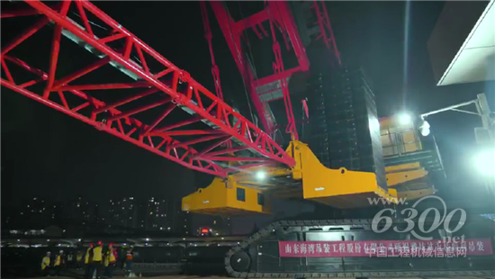 此次吊装是中国铁路史上最大吨位履带起重机吊装作业。9月11日晚,SCC20000A履带起重机随着吊装指令的下达,在100分钟后完成了最后一段天桥主体钢结构的吊装工作。全五段吊装均采用HJDB主臂+超起工况,主臂长度132m,天桥及吊具等最大起吊重量为第四段,达到225吨。
