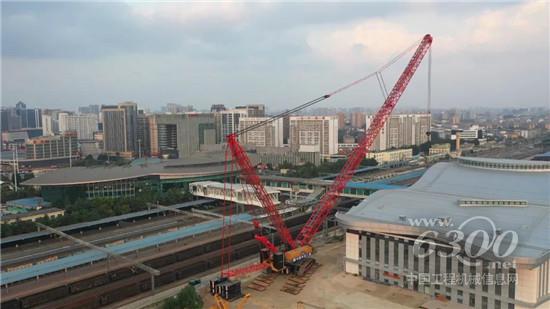 9月11日,在潍坊火车站新建旅客天桥施工现场,第五段天桥主体钢结构稳稳坐落在钢立柱上,三一SCC20000A履带起重机圆满完成首吊。