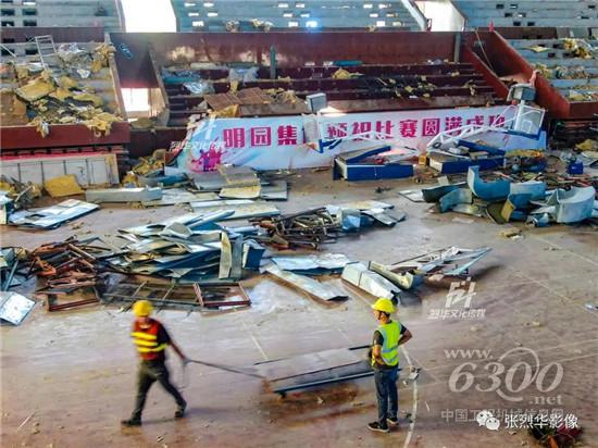 游泳跳水馆旧馆结构金属屋面拆除完成