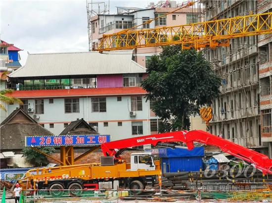孔雀大楼是西双版纳告庄西双景的收官之作,留给孔雀大楼作业空间有限。在狭窄的地段,其他泵车可能都支不开,而三一泵车“占地面积小,适应能力超强”的优势就突显出来啦。