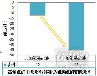 如图所示,三段加氢工艺能将倾点为-12℃的基础油直接降低到-45℃,彻底抹平了环烷基与非环烷基变压器油的最大差异。