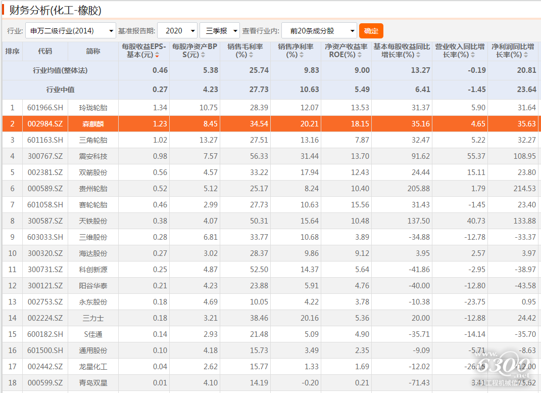 现通过东方财富(23.550, -0.82, -3.36%)数据平台来综合分析,对比投资者比较关注的热点板块之一的化工板块旗下细分行业的轮胎板块,以今年三季报最新财务数据为依据,看看谁是“轮胎中的茅台”,最具成长性、最具投资价值。如下表图1: