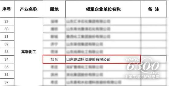 11月6日,山东省发展改革委会公布了45家拟入库重点培育的“十强”产业集群领军企业,“十强”产业集群领军企业是由山东省发展改革委组织,评选出集群内产业链完整、具有一定规模、创新与转化能力强的“十强”龙头、骨干企业,山东玲珑轮胎股份有限公司入选高端化工产业领军企业。