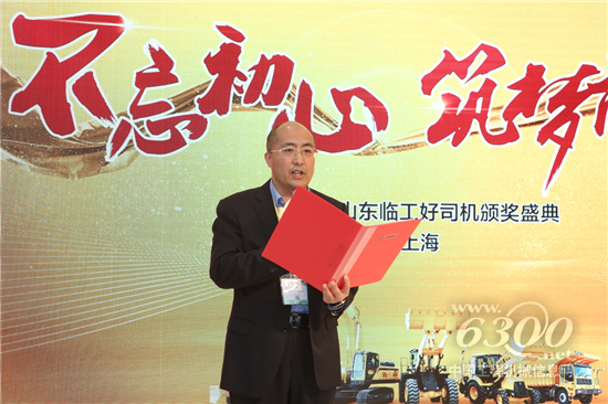 ▲山东临工济南重机营销公司总经理 霍宗德为“五星好司机”颁奖