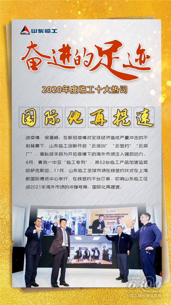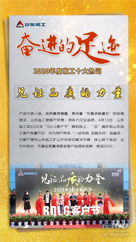 2020年,一个特别之年,也是一个难忘之年,泪水和笑容交错。从年初的抗击疫情、举国隔离,到现在复苏解冻,加足马力,暂时的沉寂只为了更好的腾飞。临工的2020也一步一个脚印,更加深入走进用户之心,不断用可靠的产品和服务向全球用户诠释着“可靠承载重托”的信念,大跨步迈向2021,迈向“走名牌之路、建百年临工”的坚定目标!