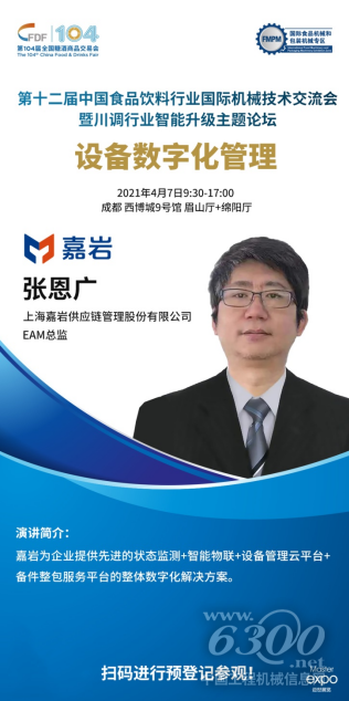 4月7日,食品饮料行业规格最高的盛会,第104届糖酒会在成都开幕。嘉岩作为企业工品服务的领导者荣幸受邀参会,嘉岩EAM总监张恩广先生在糖酒会首日的机械交流会上发表精彩主题演讲,分享嘉岩设备管理经验,受到与会嘉宾一致好评。