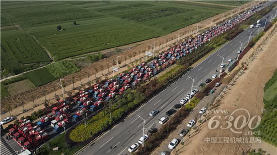 宽阔笔直的道路上,一辆辆载着雷沃谷神履带机的卡车排列整齐,跨区机手们整装待发,形成一道美丽的风景线。这浩荡场面,正是“天中麦客”2021年跨区出征的精彩一幕。
