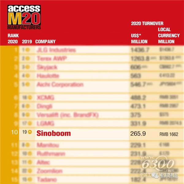 近日,由英国KHL集团旗下《Access International》(世界知名高空作业平台杂志)发布了“2020 ACCESSM20榜单”(2020年全球高空作业平台制造企业20强),星邦智能较2019年上升9个名次,一举跃升至第十位,是提升幅度最大的品牌之一,表现抢眼,增幅超其他品牌。