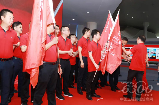 在出征仪式上,陈静先生为各战区司令授旗,三一泵送研究院院长兼南部战区司令陈添明先生代表所有战区进行庄严宣誓:我将带领战区团队以饱满的热情、百倍的信心,全力以赴解决每一项遗留问题,全速推进设备巡检等服务项目;躬身入局深入了解客户需求,全面提升产品竞争力;我们将奋勇拼搏,不辱使命圆满完成活动任务!
