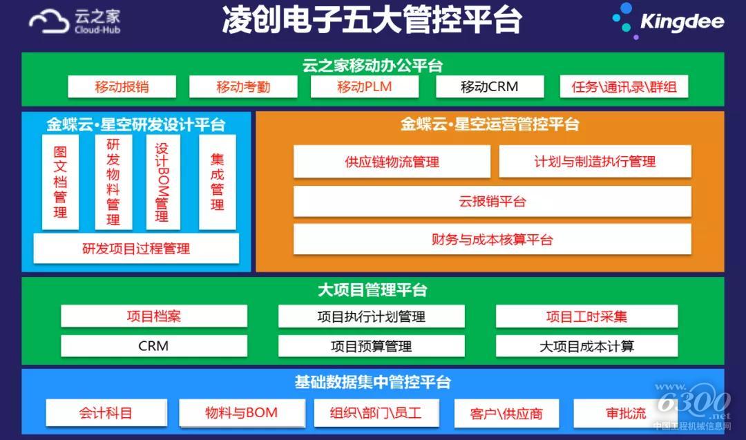 基于金蝶云·星空x云之家的业务协同一体化解决方案,凌创电子构建了五大平台,包括基础数据集中管控平台、大项目管理平台、运营管控平台、研发设计平台和云之家移动办公平台,实现全集团多工厂之间的研发设计、供应链与生产制造各环节的贯通,解决了项目型制造边设计、边生产、边交付过程中复杂的数据处理与数据不同步问题,简化了企业管理的运作流程,提升了运作的效率。