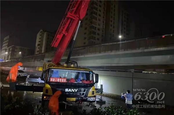 7月22日凌晨——三一起重设备在市区重灾区进行抗洪抢险,负责吊装水泵抽水,和清除障碍物。