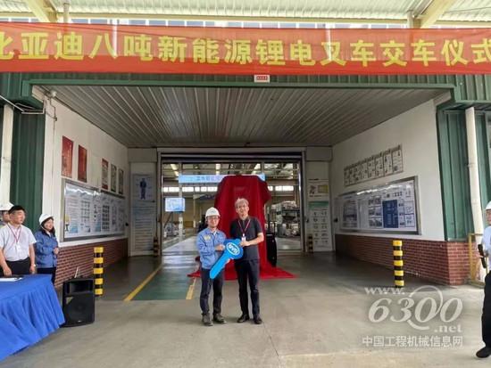 本次交付仪式于江苏苏州举行,比亚迪叉车总经理毕国忠、浦项中国通河加工中心CEO徐荣基等领导及相关人员出席了本次仪式。在仪式中,经过“千锤百炼”与重重检测的比亚迪8吨新能源叉车隆重交付于浦项集团,以助力其节省成本、提高物流搬运效率,也希望为其更快、更优的发展“添砖加瓦”。