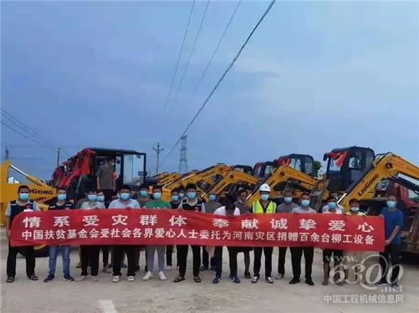 截至8月8日中国扶贫基金会为巩义、荥阳、新乡等捐赠80台柳工挖掘机和80台柳工装载机,正陆续投入重建家园工作中。