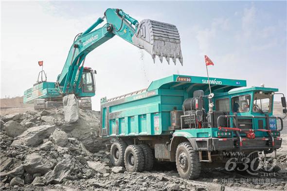 #1 SWE500ES挖掘机+SWK90宽体自卸车联合挖运作业