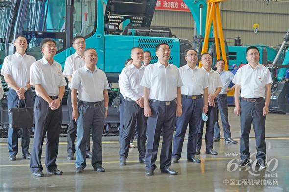 △ 王双全一行参观挖掘机总装车间。