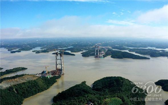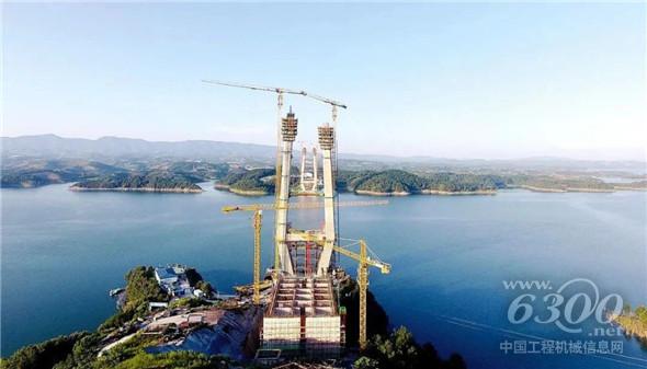 两岸主塔已施工过半,徐工塔机随着主塔施工节节升高,通过载荷自适应控制技术,实现自动识别、自动控制、轻载高速、重载低速,保证项目各项工作高效推进。