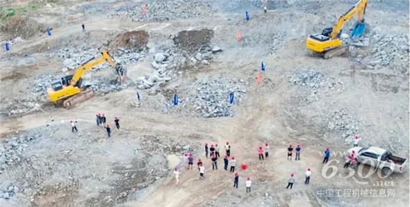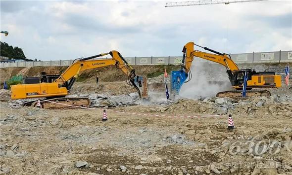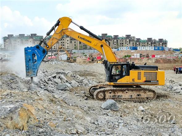 工地管理人员看到这个效果后表示,周边还有很多跟他有类似需求的同行朋友,都是玩50吨及以上大挖的,好产品就要分享,解决大家的痛点、难题。于是,销售和公司申请积极配合,安排做好场地清理、布置等辅助工作,方便更多的老板一起体验和见证柳工965EHD的破碎效果,也把柳工956EHD明星产品拉过来给大家一起体验。