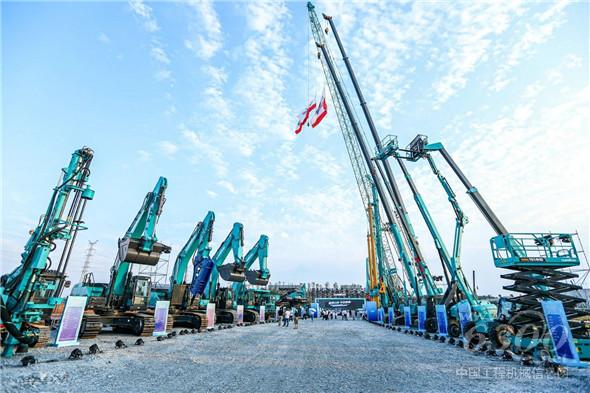 在山河工业城三期项目主干道两边,四大成套装备系列展机一字排开,等待着观展者的“检阅”。