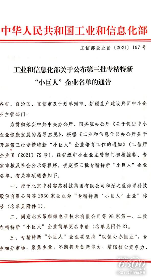 近日,国家工信部公布了第三批专精特新“小巨人”榜单,铁建重工隆昌公司成功上榜。