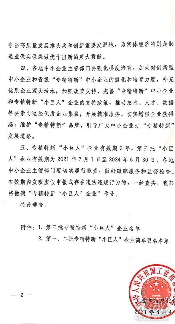 工业和信息化部关于公布第三批专精特新“小巨人”企业名单的通告