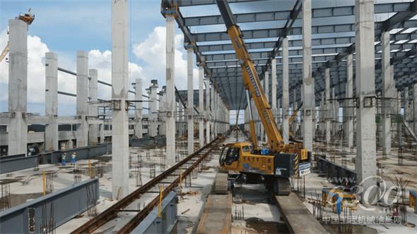 而作业空间十分逼仄的钢结构厂房框架建设,却是徐工伸缩臂履带起重机极强作业灵活性、极高场地适应性等优势大展身手的舞台。