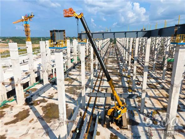 中马(钦州)产业园致力于构建TFM(科技-金融-制造和现代服务业)产业发展平台及跨国产业链与服务链。在现场,纵横交错的钢梁钢柱间,最小仅预留了长8米,宽5米的网格状作业面,这样的环境下,普通汽车起重机根本无法开展作业。