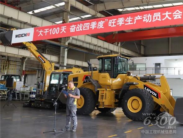 9月22日上午,以“大干100天、奋战四季度”为主题的旺季生产动员大会在挖掘机总装车间下线处举行。工程机械班子成员、生产部、采购部、质量管理部全员、各职能部门管理干部及业务骨干,共计约900人参加启动仪式。