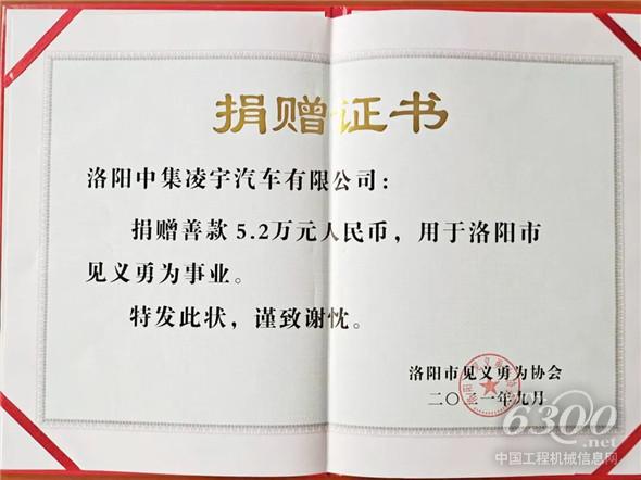洛阳中集凌宇汽车有限公司被授予洛阳市“见义勇为爱心企业”称号。