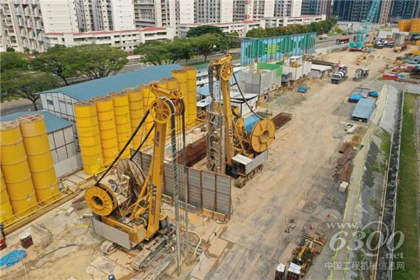 在新加坡项目工地进行组装及工法调试后,首幅连续墙在徐工双轮铣槽机快速地向下铣削中火热开工。