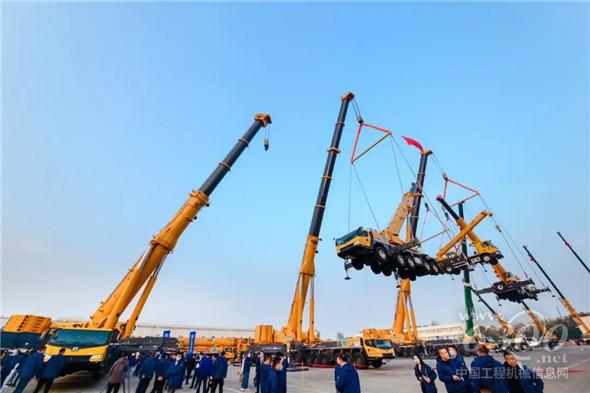 现场,包含超级起重机在内的一系列新产品批量交付给客户,投身全球重点工程建设