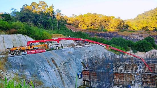 全长1652米的班纳汉湄公河特大桥是全线“墩身最高、跨度最大”特大桥,沿线山势险峻,部分坡度60°,施工难度极大,需要大量桩基、混凝土浇筑工作。