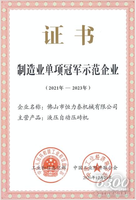 恒力泰生产的液压自动压砖机是陶瓷生产企业的核心和关键设备,整体技术居于“国际先进”水平,荣获国家级、省(部)级多项殊荣,是国家制造业单项冠军产品、中国陶瓷行业名牌产品、中国建材机械行业名牌产品、国家重点新产品、广东省高新技术产品和广东省名牌产品,产品覆盖国内各陶瓷主产区,并远销到亚洲、非洲、欧洲和美洲的40多个国家和地区,在国际上具有极高知名度。