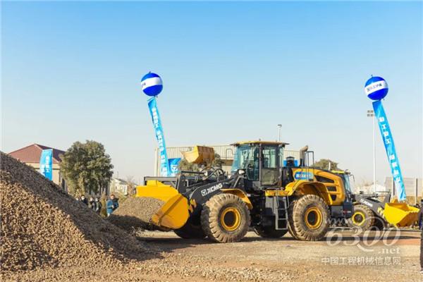 现场,“神州第一铲”35吨级超大吨位电传动轮式装载机XC9350盛大登场,整机有3层楼高、轮胎直径达3米,工作载荷接近40吨,在国内已无敌手。