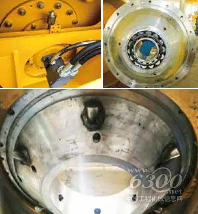 在行走作业时,法兰随振动轮旋转,当纵向小孔转到最低位置时,油流入储油桶。继续向前转时,小孔位置升高,储油桶内的油向外流出,充分润滑轴承。专有的润滑技术,确保振动轴承使用寿命更长。