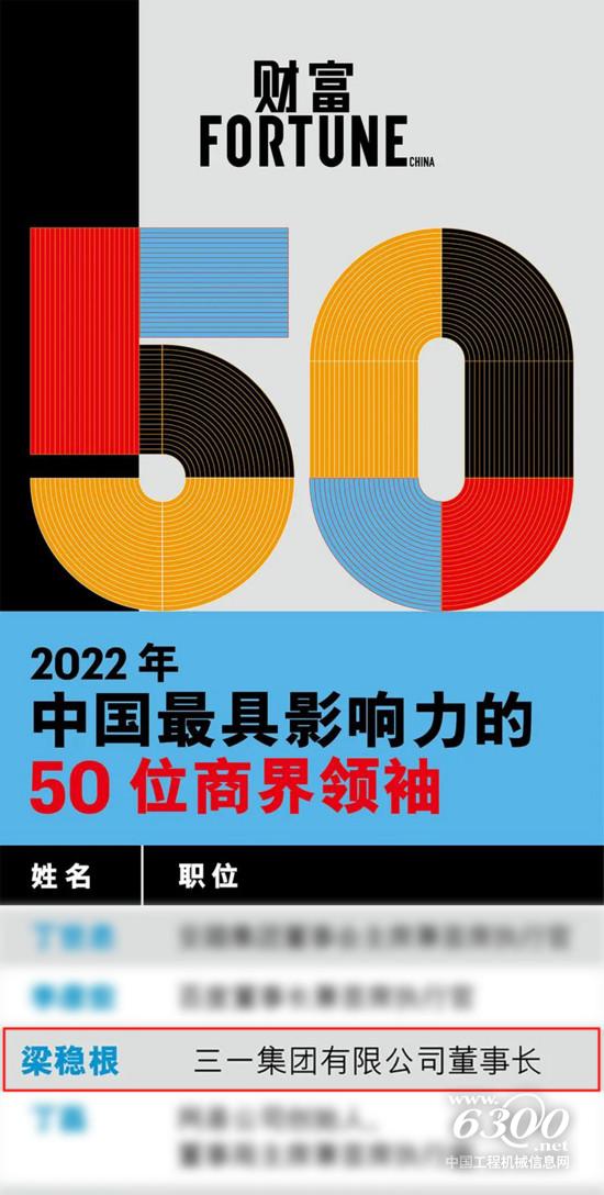4月8日,财富2022年中国最具影响力的50位商界领袖榜单发布,三一集团董事长梁稳根先生获评。