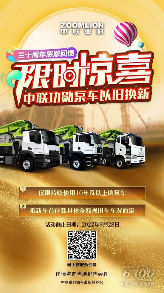 此次功勋泵车“以旧换新”活动是中联重科为了迎接司庆三十周年,感恩客户一路“砼”行,而进行的感恩活动。根据活动要求,只要是连续使用10年以上的中联重科老泵车,客户可以将旗下的这些功勋泵车用以置换中联重科任何一款新泵车,中联重科将根据功勋泵车的米段、车况等具体情况,折算成金额,抵新泵车的首付款。