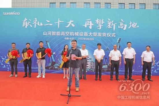 山河智能董事长、首席专家何清华,总经理付向东,副总经理黄志雄,党委书记吴文伟、高空机械事业部总经理李昌建和来自全国各地的客户代表、员工代表150余人参加此次发货仪式。