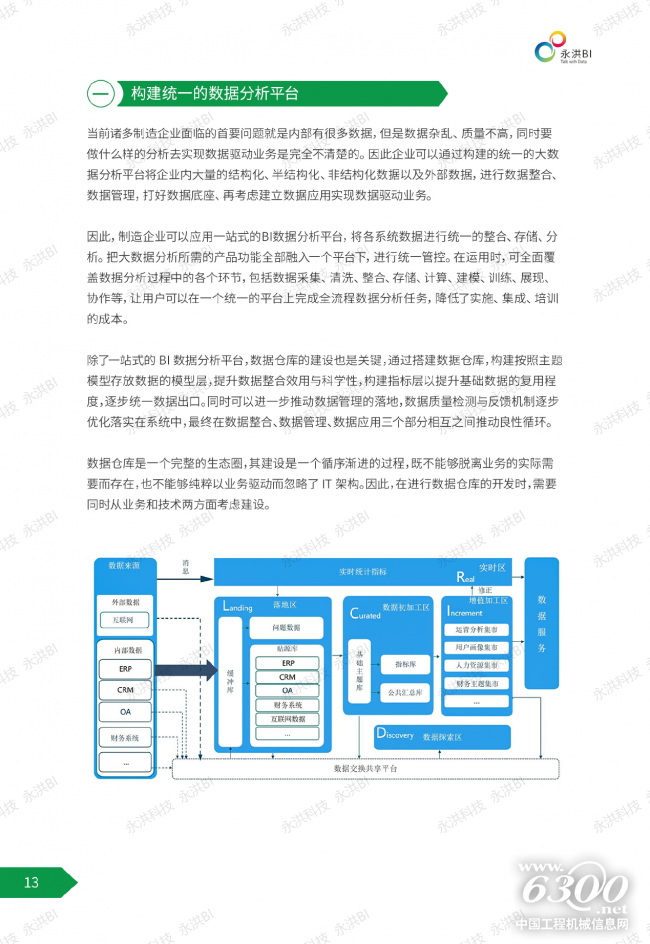 1、面对挑战,制造企业需要引入强大的一站式BI数据分析平台,将各系统数据进行统一的整合、存储、分析。把大数据分析所需的产品功能全部融入一个平台下,进行统一管控;