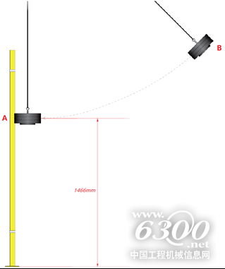 测试按照ISO 14120:2015附录C中规定的摆锤测试方法进行。网络面板和立柱使用Smart Fix固定系统组装,并使用M10螺栓固定在试验台上。调整134公斤的摆锤,使其冲击点落在地面以上1466毫米(A点)处的面板上(约总高2200毫米的2/3位置),为了达到2100焦耳的能量,134公斤摆球从起点上升到1596毫米位置(B点)。