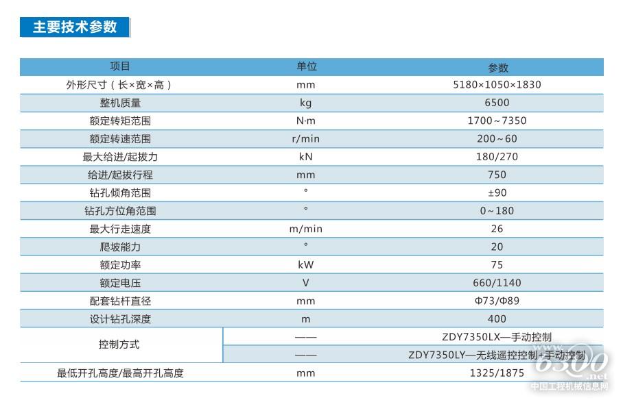 1、ZDY7350钻机在控制方式上面做了升级,研发出ZDY7350LX和ZDY7350LY两种型号,ZDY7350LX是手动控制,ZDY7350LY是无线遥控控制加手动控制,无线遥控控制可以遥控钻机行走、钻机打钻,通过遥控功能降低工人的劳动强度;