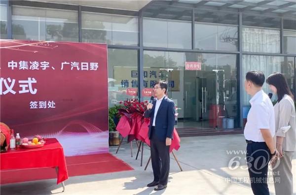 随后,广汽日野总经理保田俊朗先生发表致辞,他表示:此次交付的广汽日野搅拌车搭载世界上严苛的达喀尔拉力赛冠军同款发动机,动力强劲,性能更稳定,加上有着“罐车专家”之称的凌宇上装,必将给客户带来高质量的经济创收。
