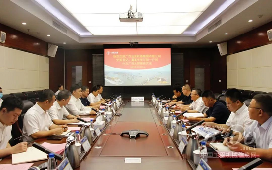 在中国建筑广西总部,刘延峰与李汉阳一行进行会谈。
