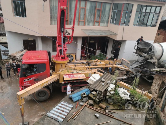 三一39米小泵车特别适合狭窄工况。农村很多自建房如果楼层4-5层,周边房屋比较多,打开支腿施工就很受限,大的泵车根本进不去,反观小泵车可以自由出入。