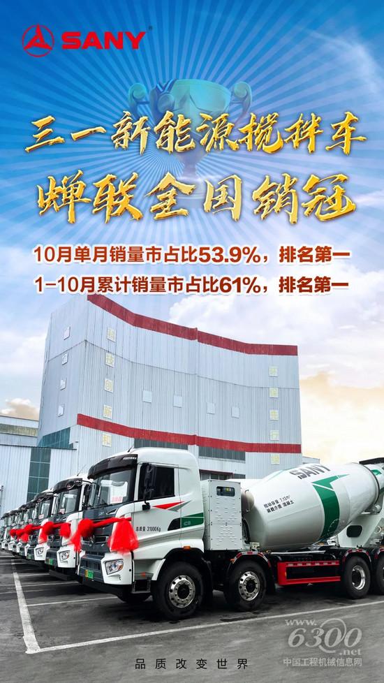 10月蝉联冠军!三一新能源搅拌车领跑行业!