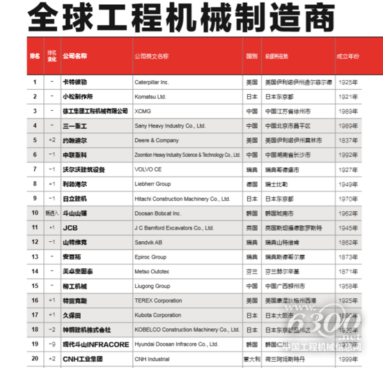 全球工程机械制造商第15