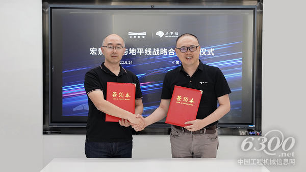 【宏景智驾创始人兼CEO刘飞龙博士(左)与地平线创始人兼首席科学家余凯博士(右)签订战略合作】