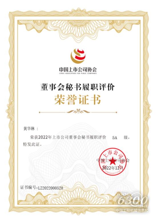 近日,中国上市公司协会(简称:中上协)发布“2022年上市公司董事会秘书履职评价”结果及“2022上市公司董办最佳实践”评选结果。广西柳工机械股份有限公司荣获“2022年度上市公司董办最佳实践案例”,公司董事会秘书黄华琳荣获“2022年上市公司董事会秘书履职评价5A级”。