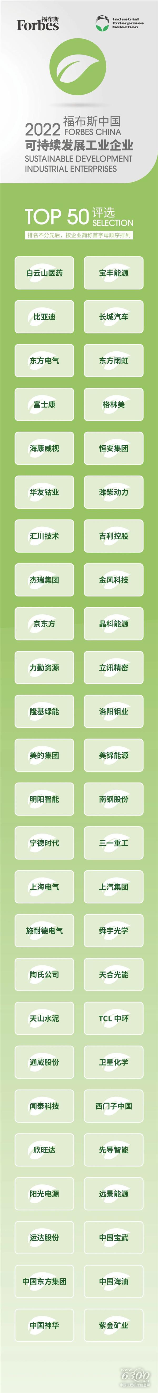 “2022福布斯中国可持续发展工业企业TOP50评选”完整名单: