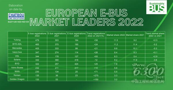 欧洲Chatrou CME Solutions的统计数据显示,宇通客车以479辆上牌量的成绩,问鼎2022年度销量冠军,巩固了宇通在竞争激烈的中国电动客车行业中的领先地位。